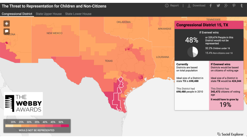 In 2016, Social Explorer was named Best Law Website in the 20th Annual Webby Awards, although the winning entry was not Social Explorer in its entirety, but a specific project Andy and his team had developed: The Threat to Representation for Children and Non-Citizens, which examined the potential impact that the Evenwel v. Abbott Supreme Court case could have had on political representation across the nation.